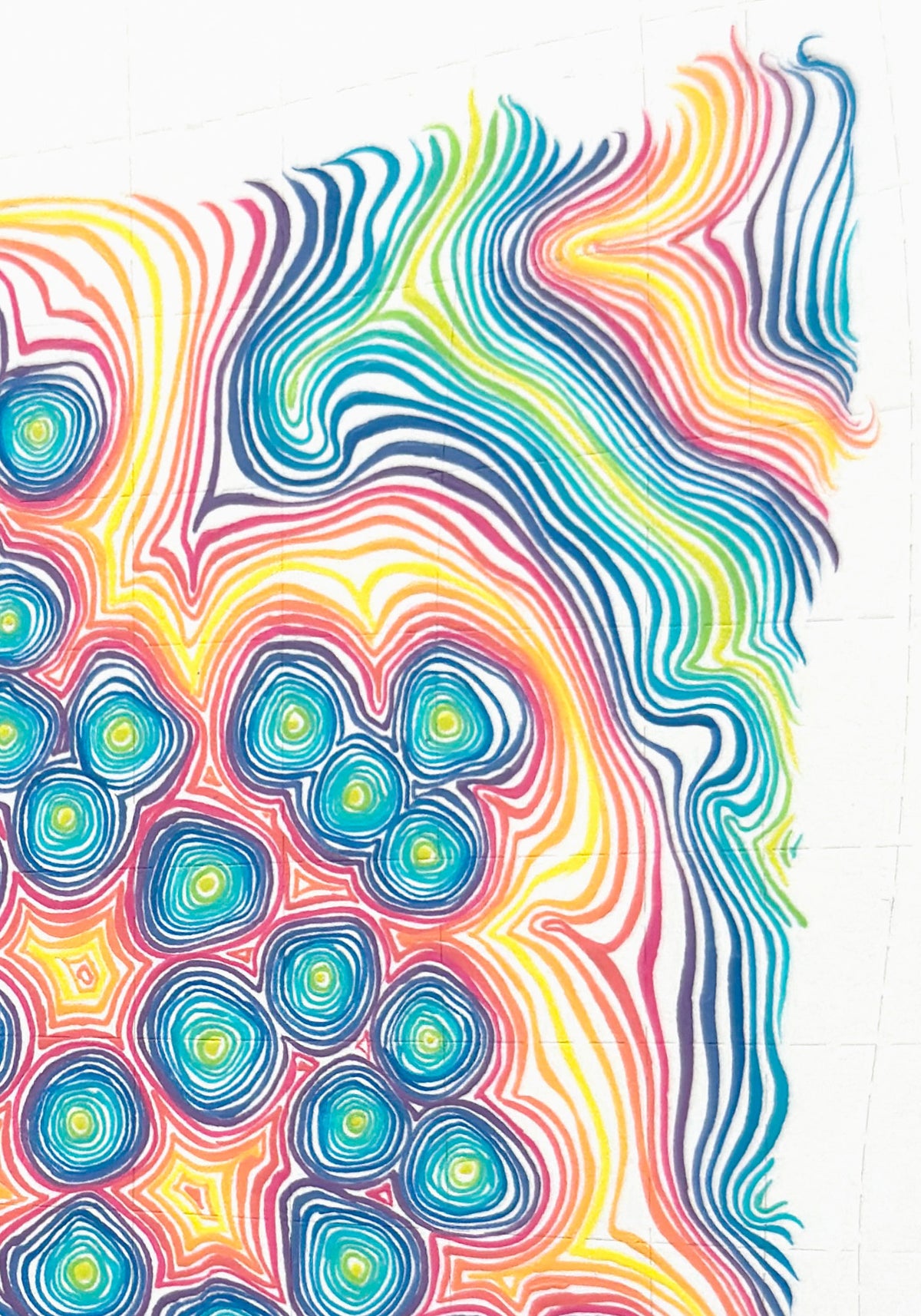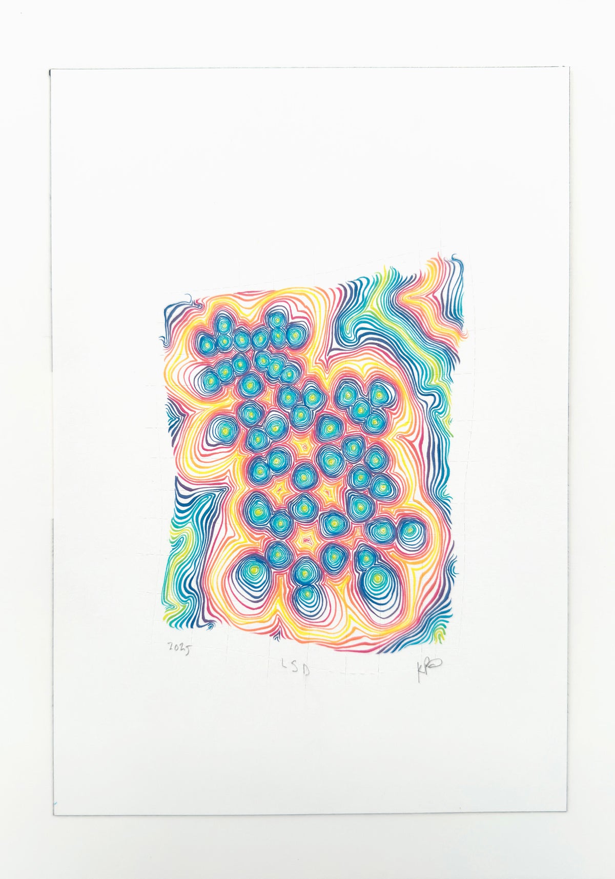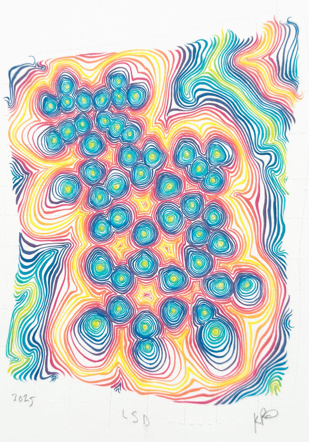 Original drawing inspired by the Lewis Structure of a Lysergide molecule on perforated watercolor paper.